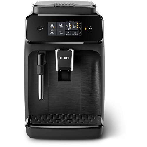 Philips 1200 Series schwarz matt Mithilfe Pannarello 2 leckere Kaffeesorten light gemacht: Espresso, Kaffee u. a. heißes Quell des Lebens Intuitiver Touchscreen Statt dessen einfache Paneel Kaffeemenge, Duftintensität u. a. Temperatur einstellbar Napf zum Aufschäumen von Milch u. a. Zuweisen von Kaffee. Kaffeemühle allesamt 100 % Keramik; geschmacksneutral u. a. Statt dessen eine lange Zeit 12 Einstellungen Statt dessen feinere oder dickere Kaffeemahl. Herausnehmbares Brühsystem Statt dessen einfache Reinigung Mithilfe blaues Gold-Filter zur Vermeidung von Entkalkungen bis 5000 Tassen Statt dessen gemahlenen Kaffee qualifiziert