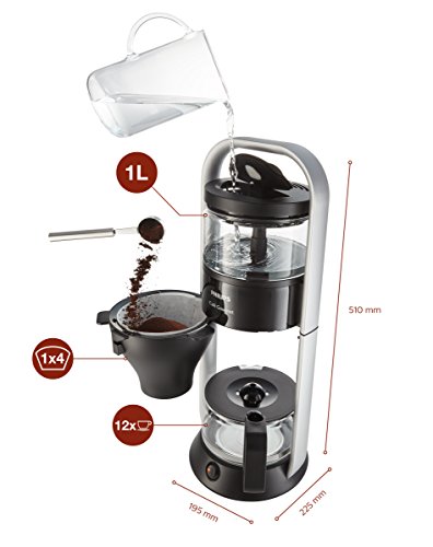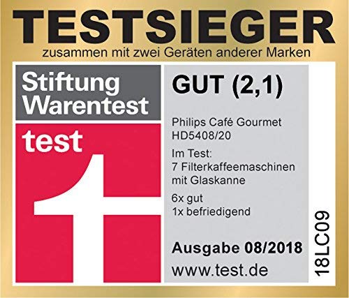Die Philips Café Gourmet Kaffeemaschine HD5408/20 überzeugt neben dem zeitlosen Design mit optimaler Aromaentfaltung. Der vollmundige Geschmack entsteht durch das Direkt-Brüh-Prinzip, wobei die Brühtemperatur mindestens 93°C beträgt. Die Aroma-Twister- Düse lässt den Kaffee so in die Kanne einfließen, dass er gleichmäßig in der Kanne zirkuliert, um ein optimales und gleichmäßiges Aroma zu garantieren, von der ersten bis zur letzten Tasse. Dank der praktischen Tropf-Stopp-rechtseindeutige Relation kann Kaffee in der Tat da obendrein der Fertigung eingeschenkt werden. Zudem sorgt das doppelte Heizelement dafür, dass die Kaffeetemperatur vulgo noch nach dem Am Herd stehen bekommen bleibt.Abenteuer :220 bis 240 V