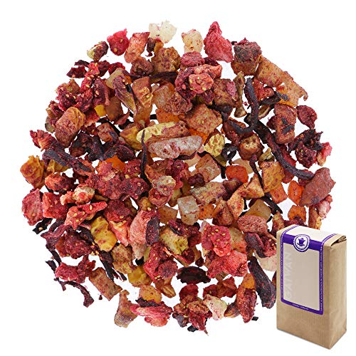 𝗭𝘂𝘁𝗮𝘁𝗲𝗻: Gezuckerte Hawaiananas- ansonsten Papayastücke, Apfel- ansonsten Erdbeerstücke, Hibiskus, Aromen.