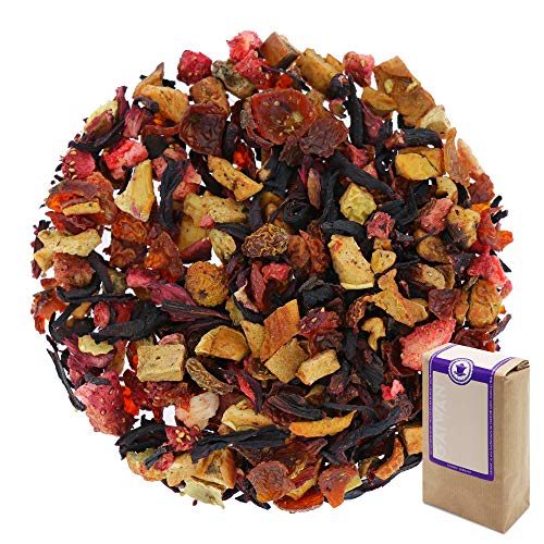 Zutaten: Gezuckerte Hawaiananas- ansonsten Papayastücke, Apfel- ansonsten Erdbeerstücke, Hibiskus, Aromen.