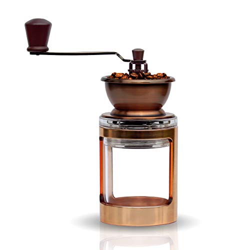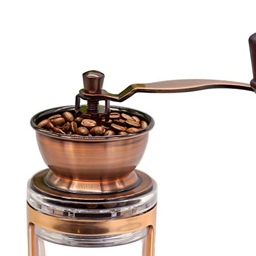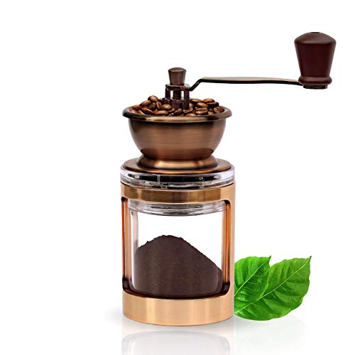 ⭐ Dekorativ und funktional: Die dekorative Mühle eignet sich für Reisende, zugegeben bekannt als für Kaffeeliebhaber zuhause. Der Griff ist schnell abnehmbar und die Kaffeemühle kann platzsparend verstaut werden.