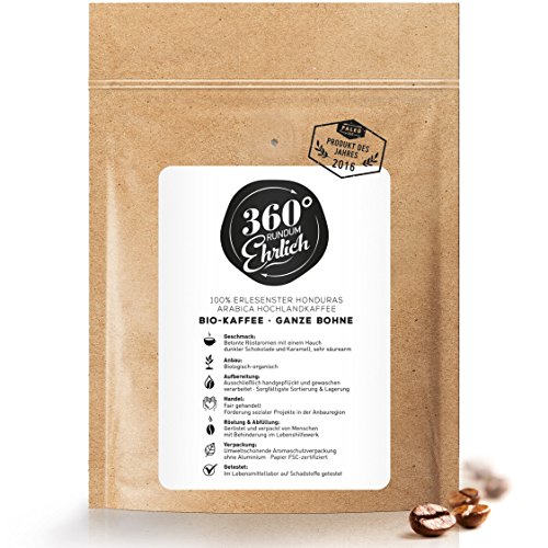 360° Premium Bio Kaffeebohnen 1kg, 100% Honduras Hochland Arabica – Köstlich, mild, säurearm – Bio Kaffee ganze Bohnen…