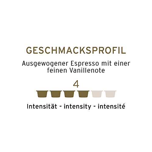 100 % Tchibo Arabica: Ausgewogener Espresso mit einer feinen Sahnekaramellnote (Intensität 5 von 6) und einer feinen Vanillenote (Intensität 4 von 6), natürliches Aroma