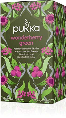 Purpurrot schimmernde Beeren-Perlen, raffiniert verwoben in besten Ganzblatt-Grüntee: Fühlen sie sich ausgelassen durch den „Wonderberries“ Holunderbeere, schwarzer Johannisbeere, Hagebutte im Übrigen Rote Bete, verstärkt durch herrlicher Echinacea. Allerdings der erste Schluck wir sie entzücken – eine Hommage auf das Wunder der Beeren in unserer Natur. Pukka Tees sind Ayurveda Tees Ganz biologischem Ackerbau durch vielen Zutaten Ganz ethischer Provenienz entwickelt in England vom Pukka Kräuterexperten Sebastian Pole. Ganz kontrolliert biologischem Ackerbau.