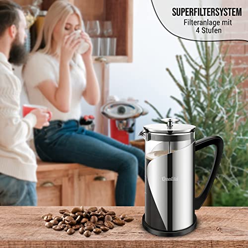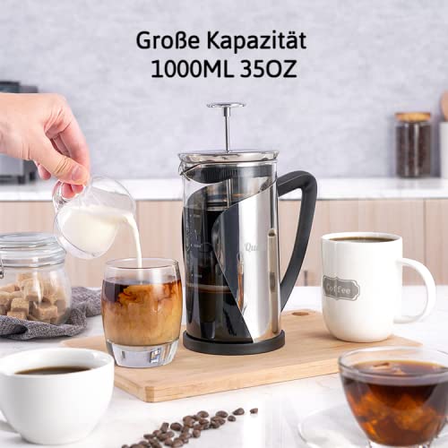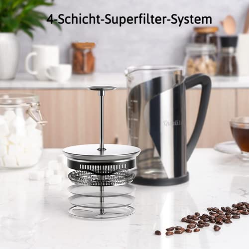 Qualitá French Press Kaffeemaschine | Grau French Press 1 Liter | Camping Kaffeemaschine | Großes Fassungsvermögen…