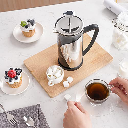 Elegantes und langlebiges Design – Die moderne Kolbenkaffeemaschine ist aus elegantem Edelstahl und hitzebeständigem Glas gefertigt. Sowohl schön als auch funktional.