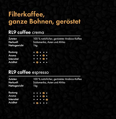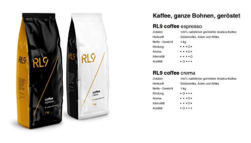RL9 100% Arabica Kaffee Coffee 1 kg ganze Bohnen Kaffeebohnen Crema Espresso Premium Extra langsam geröstet (Crema)