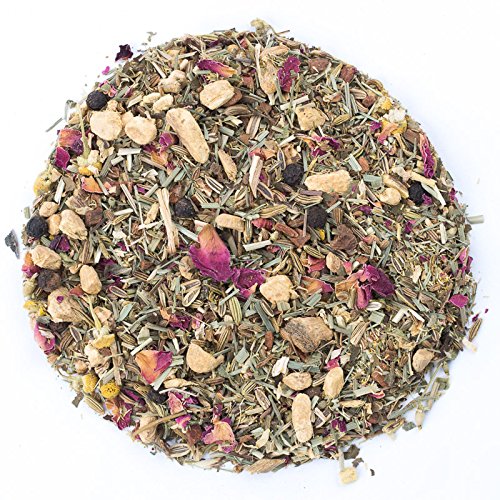 Ingwer, Anis, Fenchel, Süßholzwurzel, Zitronengras, schwarze Pfefferkörner, Zimtstückchen, Kamillenblüten, süße Brombeerblätter, Rosenblüten, Zitronenverbene