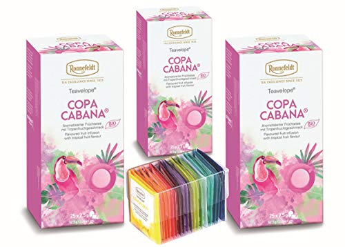 Genießen Sie den BIO Früchtetee via Tropenfruchtgeschmack von Ronnefeldt im 3er Set (3 x 25 Teebeutel, 62,5 g) zu der Probierbox „Bunte Auswahl“ via 20 Aufgussbeutel.