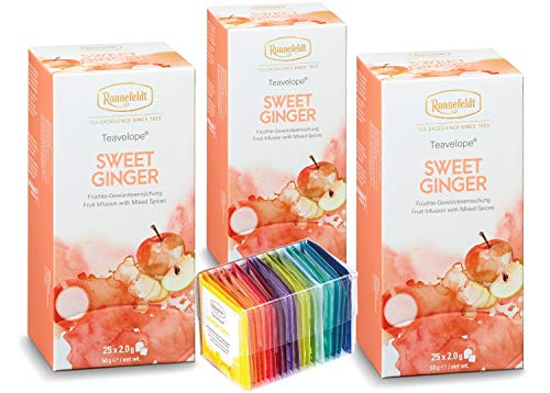 Genießen Sie die Früchte-Gewürzteemischung von Ronnefeldt im 3er Set zu der Probierbox „Bunte Auswahl“ über 20 Aufgussbeutel.