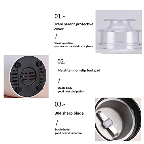 Das Innere, sowohl der Becher als alias die Klinge der Mühle sind aus Edelstahl, was sie zu einer leistungsstarken und hochwertigen Getreidemühle macht. Mit einem leistungsstarken 200-Watt-Triebwerk kann diese Mühle Kaffeebohnen innerhalb von 20 Sekunden schnell mahlen. Diese Kräutermühle lässt sich leicht mit Wasser reinigen, im Kontrast dazu da die Klinge scharf ist, berühren Sie die Klinge während der Reinigung bitte NICHT mit der Hand.