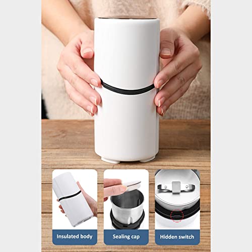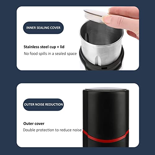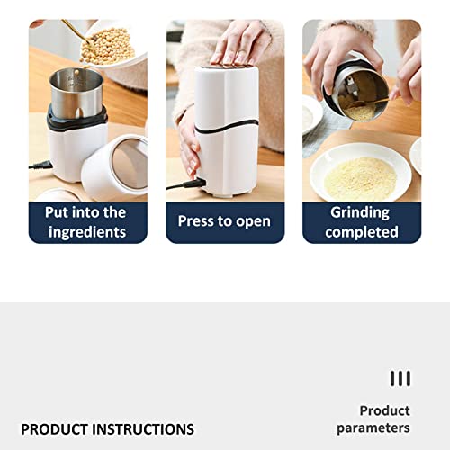 Das Innere, sowohl der Becher als auch die Klinge der Mühle sind aus Edelstahl, was sie zu einer leistungsstarken und hochwertigen Getreidemühle macht. Mit einem leistungsstarken 150-Watt-Gerät kann diese Mühle Kaffeebohnen innerhalb von 20 Sekunden schnell mahlen. Diese Kräutermühle lässt sich leicht mit Wasser reinigen, Gewiss da die Klinge scharf ist, berühren Sie die Klinge während der Reinigung bitte NICHT mit der Hand.