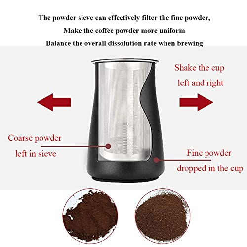 ★ Mit Kaffeepulver-Siebbecher: Schütteln Sie den Becher nach dem Mahlen nach links und rechts, um das feine Pulver effektiv zu abseihen, das Kaffeepulver gleichmäßiger zu machen und die Gesamtauflösungsrate beim Brühen auszugleichen.