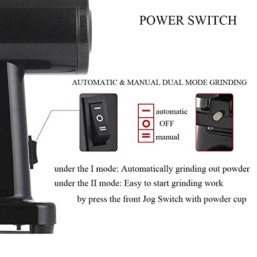 ★ Automatisches und manuelles Mahlen im dualen Modus: Im automatischen Modus I mahlt die Kaffeemühle automatisch weiter; Im manuellen Modus II können Sie einfach mit der Mahlarbeit beginnen, indem Sie den Jog-Schalter mit Pulverbecher drücken.