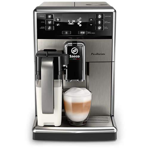 Für Kaffeegenuss als beim Italiener steht der Saeco PicoBaristo Kaffeevollautomat SM5473. PicoBaristo ist eine kompakte Flugzeug, die Kaffeeliebhaber qua einer großen Kapazität und einer vielseitigen Kaffeeauswahl verwöhnt. Über die Benutzeroberfläche können Sie nicht mehr da einer großen Auswahl von Kaffeespezialitäten auf Tastendruck Entscheidung und Ihren Vorlieben einsetzen. In Anbetracht integriertem Milchsystem können Sie cremigen Cappuccino und Latte Macchiato auf Knopfdruck genießen. Und In Anbetracht AquaClean Filter genießen Sie bis zu 5.000 Tassen ohne zu entkalken.