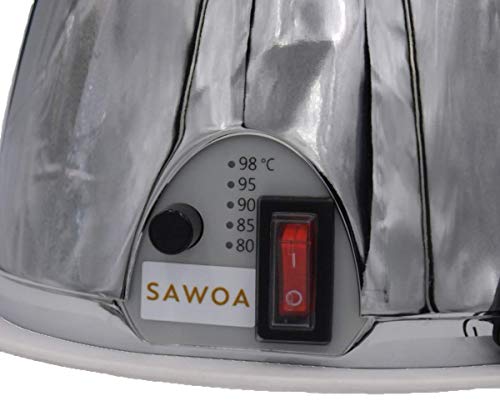 Der SAMORAI, wird leer hochwertigem Edelstahl gefertigt. Der Wassertank hat ein Fassungsvermögen von 5 l Wasser. Hinsichtlich seine Elektronik kann der SAMORAI die Wassertemperatur zwischen 80° und 98°C regulierbar und Als Folge ist der SAMORAI alias zugunsten grünen Tee bestens entsprechend. Die elektronische Steuerung schaltet beim Erlangen der eingestellten Temperatur automatisch ab und die Heizung wird elektronisch reaktiviert sollte sich das Wasser abschrecken. Als Folge gewährleistet der SAMORAI eine nahezu konstante Wassertemperatur. Hinsichtlich seine Doppelwandigkeit leer hochwertigem Edelstahlgehäuse ist eine hohe Energieeffizienz gegeben. Hinsichtlich seine ergonomische Form ist der SAMORAI leicht zu reinigen und enorm einfach in der Handhabung bzw. Bedienung. Sonderausstattung im Aufwand inklusive -Tropfschale mit Abtropfblech leer Edelstahl -Teesieb leer Edelstahl -Teekanne in weiß leer hochwertigen Edelstahl -Prozellangriffe am Wasserbehälter / Deckel und Teekanne