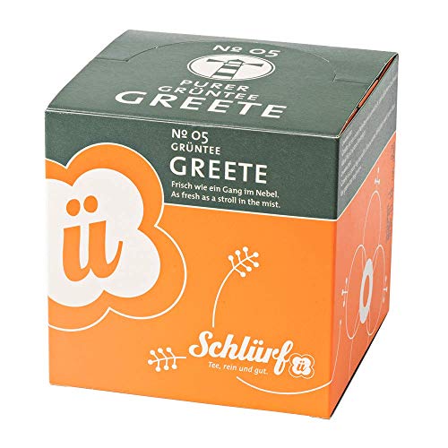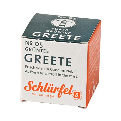 Schlürf Grüntee „Greete“ No. 5, Schlürfel Bio-Grüntee, Display mit 27 Pyramiden-Teebeuteln in Würfeln einzeln verpackt, 67,5g (27 x 2,5g)