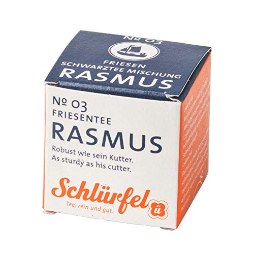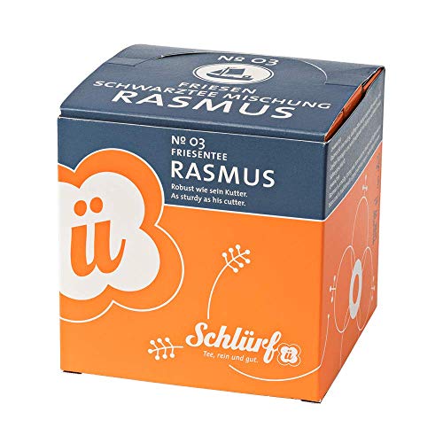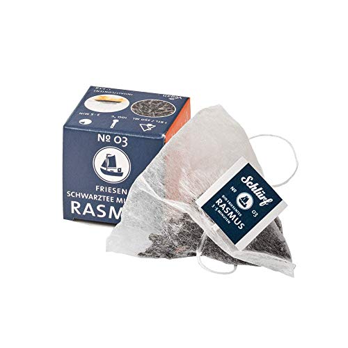 Schlürf Schwarztee „Rasmus“ No. 3, Schlürfel Bio-Schwarztee Friesenmischung, Display mit 27 Pyramiden-Teebeuteln in Würfeln einzeln verpackt, 67,5g (27 x 2,5g)