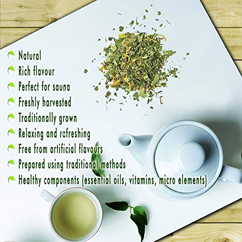Perfekt für die Sauna: Durch den Schwitzen in der Sauna entgiftet und nochmal sich der Körper. Du fühlst Dich danach wie neu, voller Kraft und erleichtert. Dieser Tee ist empfohlen während oder nach die Saunasession um die verlorene Hydratation zurückzubekommen.