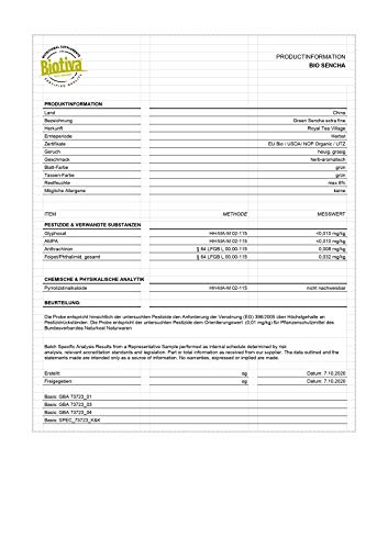 HÖCHSTE WIRKSTOFF QUALITÄT: Der Grüntee ist aus nachhaltigem, ökologischem Anbau und wird Wirkstoff-schonend verarbeitet. Unser Bio-Sencha hat das typische, beliebte mild grasig-blumige Aroma und schmeckt feinherb mit leichter Fruchtnote.