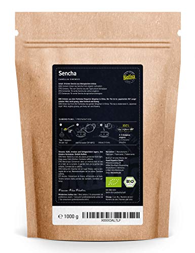 Biotiva Sencha Grüntee Bio 1000g – Top Sencha – 1kg-Spitzenpreis – Mild, leicht grasig, dabei feinherb und blumig – Fairbiotea-Zertifikat – Abgefüllt und kontrolliert in Deutschland (DE-ÃKO-005)
