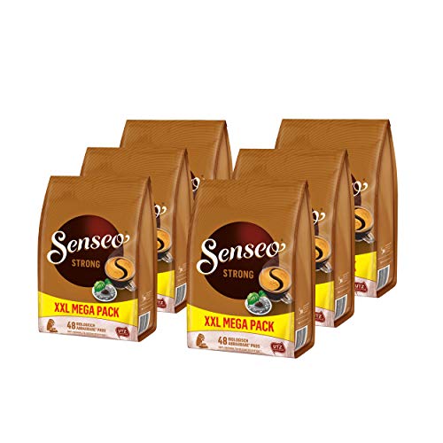 Senseo Kaffeepads Strong / KrÃftig, Kraftvoller Geschmack, Kaffee, 48 Pads:Senseo Strong: Tauchen Sie ein, in den reichen, krÃftigen Geschmack von Senseo Strong. Eine Kaffeemischung von dunklen gerÃsteten Arabica und Robusta-Bohnen mit einer weichen Crema. Eine starke Potpourri ausgewÃhlter Arabica und Robusta Bohnen fÃr einen markanten Kaffee mit kompromisslosem alphabetisches Zeichen. Er eignet er sich allerbest fÃr Momente, in denen Sie einen Energiekick brauchen, beispielsweise frÃh am Morgen oder nach dem Mittagessen. Die Angleichung von Senseo ist immerwährend der Anbruch von etwas schÃnem. WÃhlen Sie Ihren Lieblingskaffee und gehen Sie den Bruchstück in eine Welt voller Spannung, wo QualitÃt von zentraler Bedeutung ist. Inspiriert von dem vollen, satten Geschmack der 50 fein gemahlenen Kaffeebohnen in jedem Pad, wird Ihr Tag mit einem Knopfdruck zu einem strahlenden Tag. Produzent / Hergestellt fÃr: JACOBS Douwe Egberts BV, Oosterdoksstraat 80, 1011 DK Hauptstadt der Niederlande – Niederlande , Zutaten:Senseo Kaffeepads Strong / KrÃftig, Kraftvoller Geschmack, Kaffee, 48 Pads:Gemahlener RÃstkaffee , Lieferumfang:6 x 1 Packung Senseo Kaffeepads Strong / Isoliert KrÃftig, Kraftvoller Geschmack, Kaffee, neues Design, 48 Pads