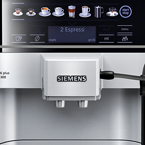 Siemens EQ.6 plus s300 TE653501DE Kaffeevollautomat (1500 W, SensoFlow System, aromaDouble Shot, coffeeSelect Display, Keramik-Mahlwerk, 15 bar. Bis zu 2 personalisierte Getränke ablegen) silber