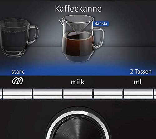 Farbiges TFT-Display mit interaktiver MenüführungsuperSilent: Die leisesten Kaffeevollautomaten von Siemens dank deutlicher GeräuschreduzierungindividualCoffee System: Persönliches Getränke-Menü sondern bis zu 10 ProfileKaffeeauslauf und Milchschäumer höhenverstellbar: Bis zu 15 cm hohe Latte Macchiato Gläser passen darunteroneTouch DoubleCup: Zwei Tassen gleichzeitig ausgeben sondern ganz Kaffee- und MilchspezialitätenKannenfunktion: Mit zwar einem Tastendruck eine ganze Kanne Caffee Crema bekommen.Wassertank entnehmbar zum leichten Befüllen (2.3 l Volumen)Frühwarnung, wenn Wassertank bald leer