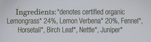 Zitronengras* 24%, Zitronenstrauch* 20%, Fenchel*, Zinnkraut*, Birkenblatt*, Brennnessel*, Wacholder*. * k.b.A. (Kontrolliert biologischer Landbau)