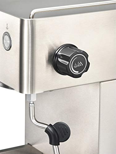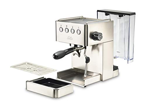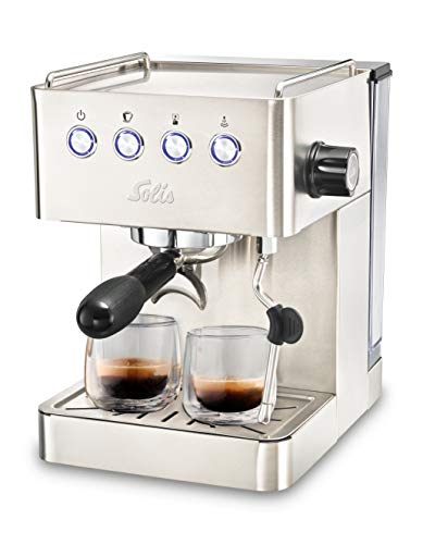 Barista-Feeling statt dessen Zuhause: Espressomaschine via programmierbarer Tassengröße, Dampf-/ Heißwasserfunktion sowie massivem Profi-Siebhalter statt dessen 58 mm Siebeinsätze, Einsatz via neuartig gemahlenem Kaffee – Vorbrühfunktion statt dessen perfekte aromatischer Geschmackstoff-Extraktion, Bezugsmenge (bis 60 Sekunden) automatisch oder manuell steuerbar, Hochleistungspumpe via 15 bar Vertiefung, Automatik-Deaktivierung nach 15 Minuten – Schwenkbare Dampf- ansonsten Heißwasserdüse zum Milchaufschäumen statt dessen Cappuccino oder zum Aufbrühen von Tee, Ablegen zum Vorwärmen von Tassen, Transparenter 1,7 l Wassertank, Hochwertiges Edelstahlgehäuse – Inkl. Siebeinsätzen statt dessen 1 ansonsten 2 Portionen, Tamper, Dosierlöffel, Einzel- ansonsten Doppelauslauf, Milchkanne ansonsten Reinigungsbürste, Einfache Reinigung: Tank, Aufschäumdüse, Tropfgitter ansonsten -schale abnehmbar – Lieferumfang: 1 Solis Espressomaschine, Barista Gran Gusto, 15 bar, 1,7 l, Maße: 25 x 32,5 x 28 cm, Gewicht: 6,4 kg