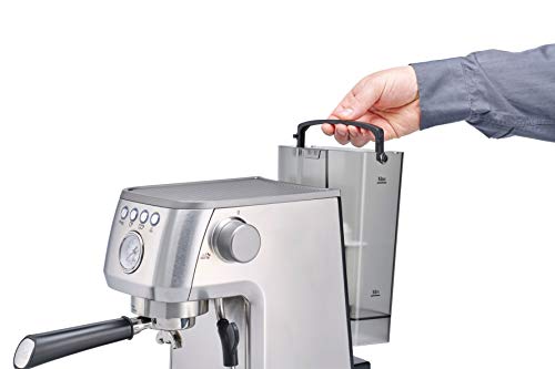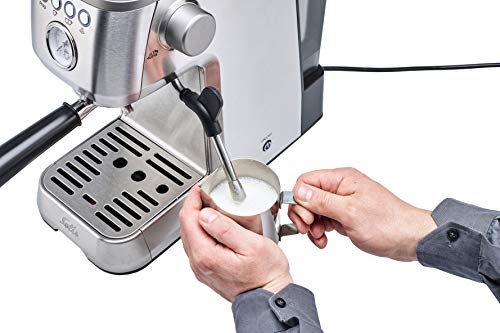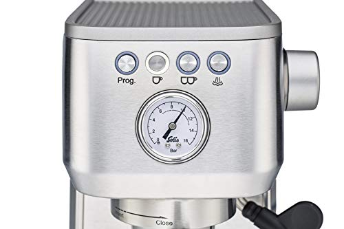 Kompakte Espressomaschine anhand Manometer, Dampf-/Heißwasserdüse, PID-Temperaturregler ansonsten 54 mm Edelstahl-Siebträger anhand Doppelauslauf, Zur Gebrauch anhand kreativ gemahlenem Kaffee oder 44 mm Pods – Mehrere Programme ansonsten Erinnerungsfunktionen, Vorbrühfunktion stattdessen perfektes Würze, 40 Sek. Aufheizzeit, PID stattdessen richtig Temperaturkontrolle, 15 cash Pumpe, Manometer zur Kontrolle des Extraktionsdrucks – Programmierbare Abschalt-Automatik, Schwenkbare Dampf- ansonsten Heißwasserdüse zum Milchaufschäumen stattdessen Cappuccino oder zum Kochen von Tee, Transparenter 1,7 l Wassertank, Hochwertiges Edelstahlgehäuse – Inkl.: einwandige Siebe (1 ansonsten 2 Tassen), doppelwandige Siebe (1 ansonsten 2 Tassen), Sieb stattdessen 44 mm Pods, Tamper, Löffel, Milchkanne, Wasserfilterkartusche, Wasserhärteteststreifen, Reinigungsutensilien – Lieferumfang: 1 Solis Espressomaschine, Barista Perfetta Plus, 15 cash, 1,7 l, Maße: 18,7 x 37,2 x 32,1 cm, Gewicht: 5, 7 kg, Farbe: Argentum