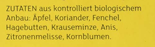 Apfelstücke feinschnitt bio , Koriander bio , Fenchel bio , Hagebutten bio , Krauseminze bio , Anis bio , Zitronenmelisse bio , Kornblumen bio