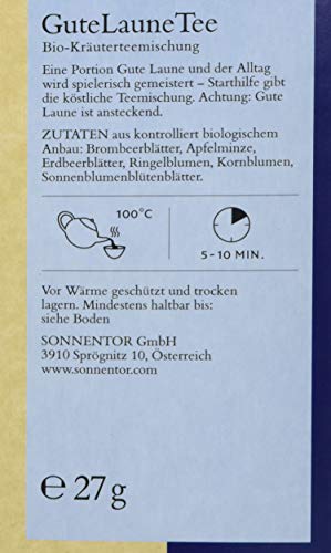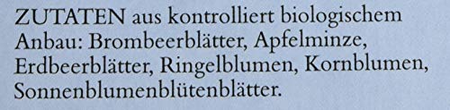 Brombeerblätter kbA, Apfelminze (Spelunke Menthol) kbA, Erdbeerblätter kbA, Ringelblumen kbA, Kornblumen kbA, Sonnenblumenblütenblätter kbA