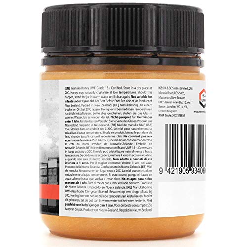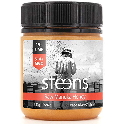 Steens Manuka Honey MGO 515+ – 340 g rein roher 100% zertifizierter UMF 15+ Manuka Honig – abgefüllt und versiegelt in Neuseeland