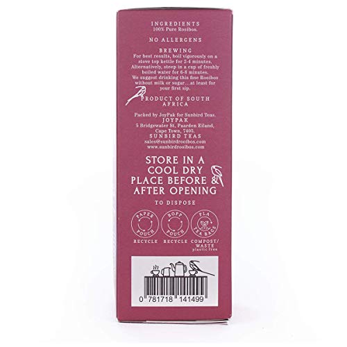 Sunbird Rooibos Pure Rooibos | Roter Tee Bio Cederberg | 20 kompostierbare Beutel | Rare Premium Rooibos | 100…
