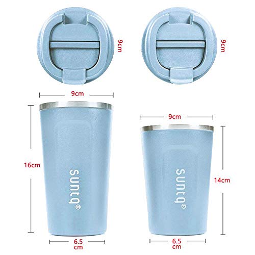 Funktioneller Stil, Perfekte Kapazität – SUNTQ Kaffeebecher sind sorgfätig pulverbeschichtet. Matte Oberfläche und Einhandbedienung Design mit auslaufsicherem Deckel eignet sich portabel und hervorragend für eine bequeme Reise. Nehmen Sie unsere kleine Kaffeebecher bequem in der Hand oder stecken Sie ihn einfach in Becherhalter.
