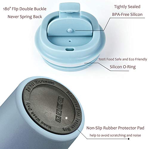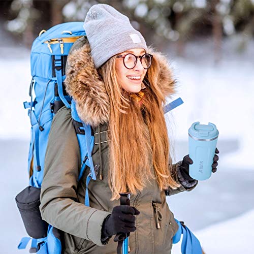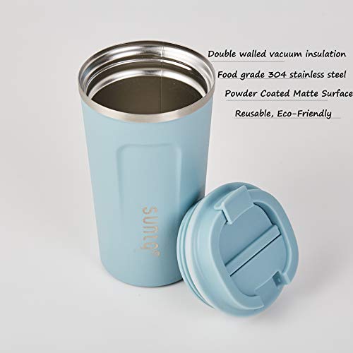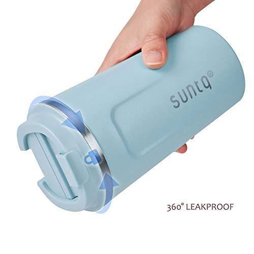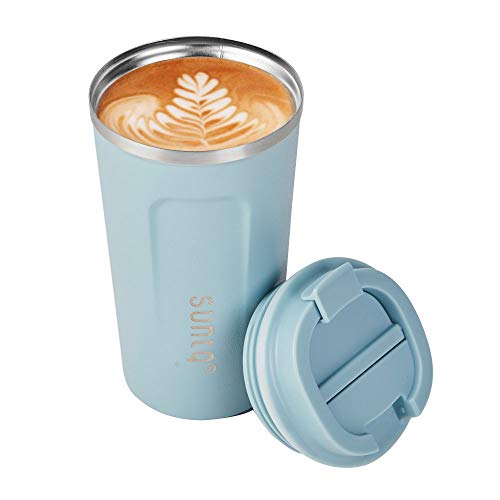 SUNTQ Kaffeebecher to go aus Edelstahl – Thermobecher Doppelwand Isoliert – Kaffeetasse mit Auslaufsicherem Deckel Wiederverwendbar (Himmel Blau, 380ml)