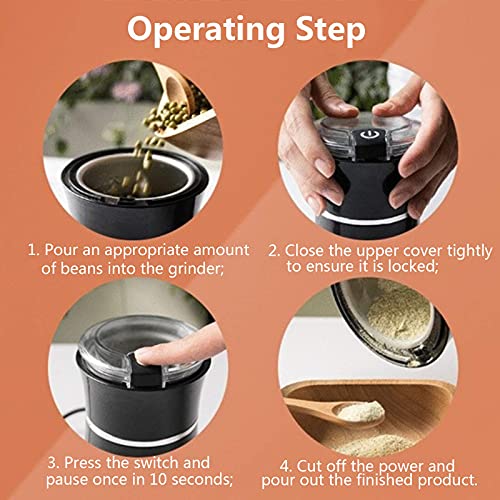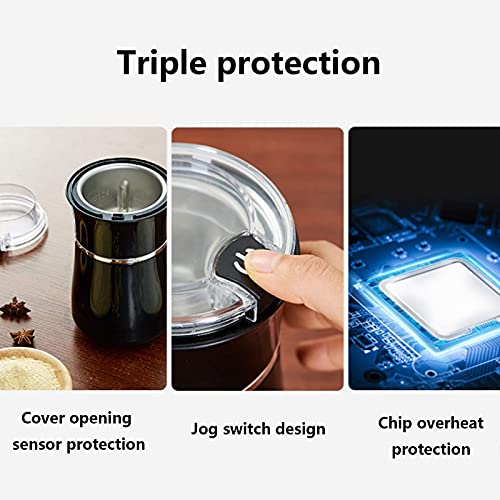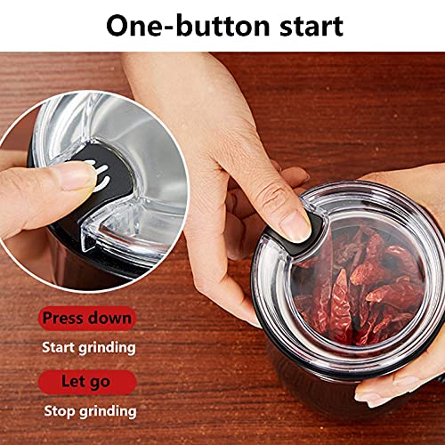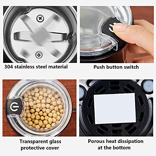 Hohe Qualität und Langlebigkeit == Hochwertige 304-Edelstahlklinge, 150-W-Motor sorgen für kontinuierliches und gleichmäßiges Mahlen, um das ursprüngliche reiche Aroma und Öl der Kaffeebohne zu erhalten. Sie können auch Gewürze, Nüsse, Kräuter, Pfeffer, Samen, Körner usw. mahlen mehr.