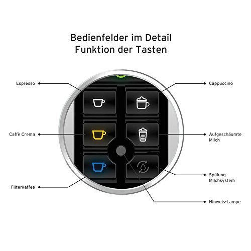 abnehmbare Milchkaraffe (ca. 0,5 Liter) zugunsten Kaffeemilchspezialitäten und geschäumte Milch – ideal zur Aufbewahrung im Kühlschrank