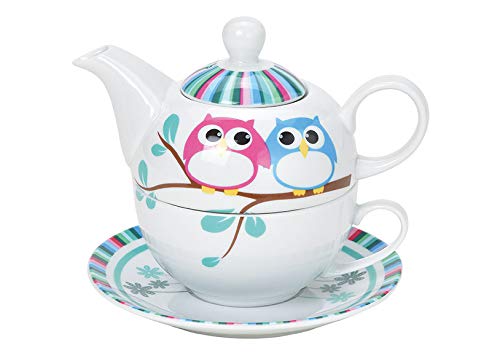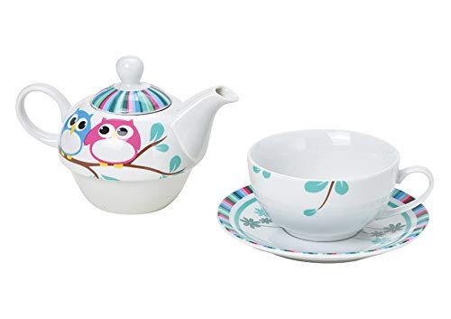 Tea for One Set mit Eule (Kanne & Tasse & Untertasse)