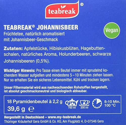 Apfelstücke, Hibiskusblüten, Hagebuttenschalen, natürliches Aroma, Holunderbeeren, schwarze Johannisbeeren (0,5%)