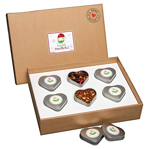 TEALAVIE – 6er Set Wintertee | Winter Mix 2 | 60g Früchtetee und Rooibostee lose in edlen Herz-Teedosen | Xmas Weihnachtstee – loser Tee in für Teeliebhaber | ideal für Dankeschön Geschenke