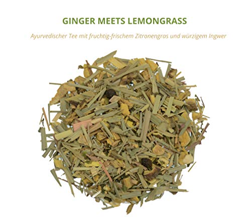 GINGER MEETS LEMONGRASS – Ayurvedischer Tee mit Ingwer, Zitronengras, Süßholzwurzeln, Pfefferminze, Zitronenschalen und schwarze Pfefferkörner. Aufregend würzige Ingwer-Teemischung.