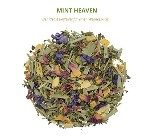 MINT HEAVEN – Basischer Tee durch abgestimmt-frischem Geschmack auf Grund verschiedene Teekräuter als Brennnesselblätter, Pfefferminze und Zitronengras und der Süße der Süßholzwurzel.