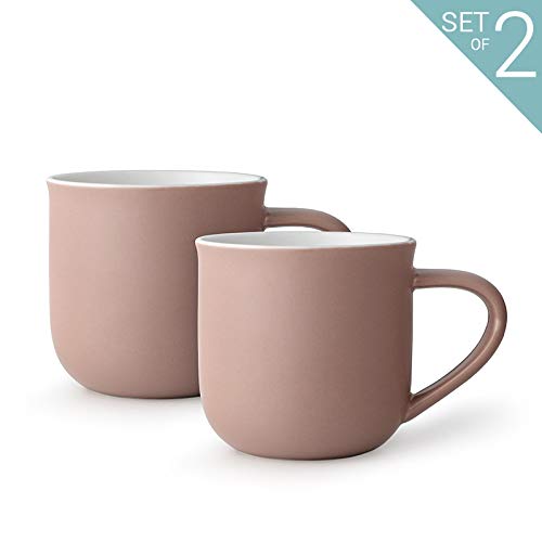 VIVA scandinavia Tee-Tassen-Set oder Kaffee-Tassen-Set 2-teilig aus Porzellan, mit Henkel, 0.35 Liter – Rosa