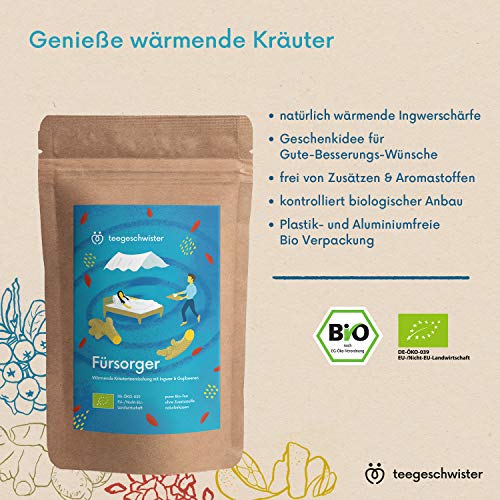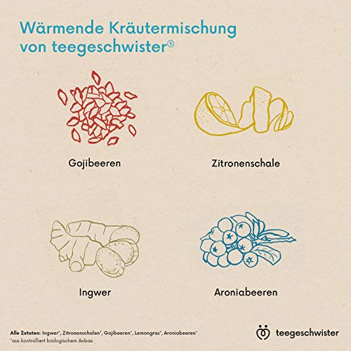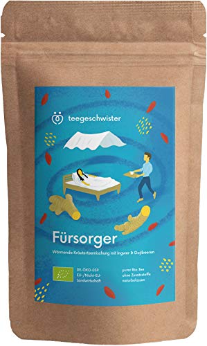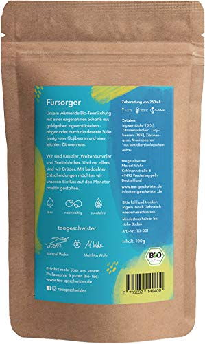 teegeschwister® | Fürsorger Bio-Tee | Bio-Ingwertee mit Zitrone und Gojibeeren | Gute Besserung Geschenk-Idee für kalte Tage | naturbelassen | 100g