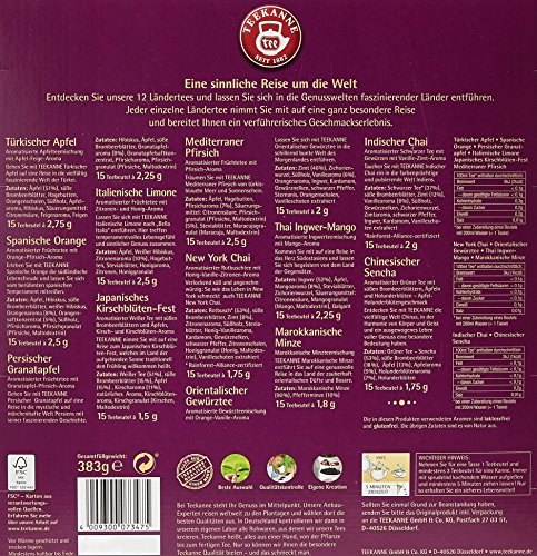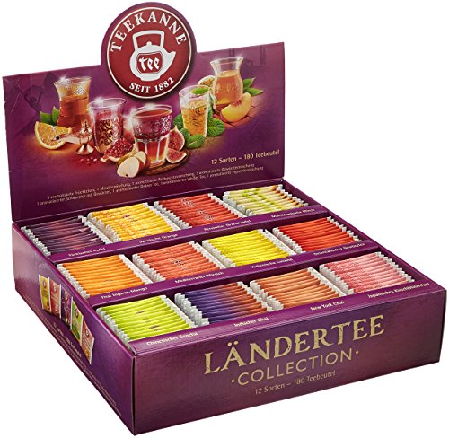 Entdecken Sie 12 Ländertees und lassen Sie sich in die Genusswelten faszinierender Länder entführen. In dieser Box finden Sie in der Regel 180 Teebeutel von 12 verschiedenen TEEKANNE-Ländertees.