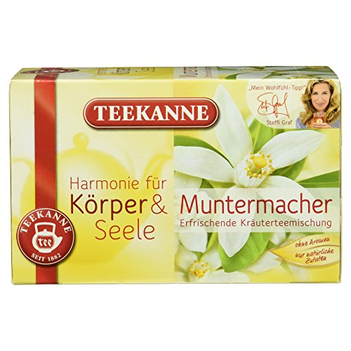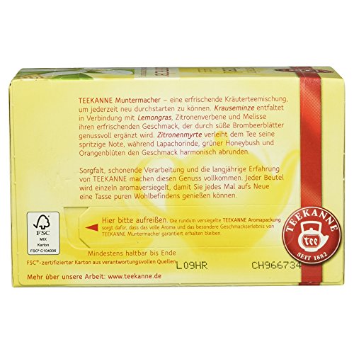 Teekanne Muntermacher – eine erfrischende Kräuterteemischung, um alle nasenlang kreativ durchstarten zu können. Krauseminze entfaltet in Verbindung mit Lemongras, Zitronenverbene und Melisse ihren erfrischenden Geschmack, der durch süße Brombeerblätter genussvoll ergänzt wird. Lemonmyrthe verleiht dem Tee seine spritzige Anschrift, unterdessen Lapachorinde, grüner Honeybush und Orangenblüten den Geschmack abgestimmt abschrägen. Genießen Sie eine Tasse puren Wohlbefindens.