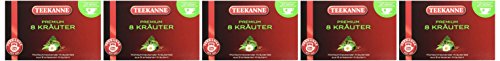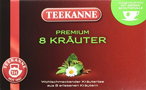 - Mit Rotbusch, Brombeerblättern, Zitronenverbene, Pfefferminze, Kamille, Fenchel, Süßholz auch Zimt.