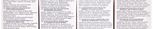 Äpfel (50 %), Hibiskus, Hagebutten, Apfelkuchenaroma (7 %), Steviablätter, Süßholz, Karamellaroma, Zichorienwurzel.